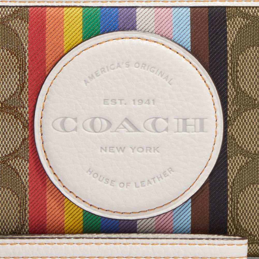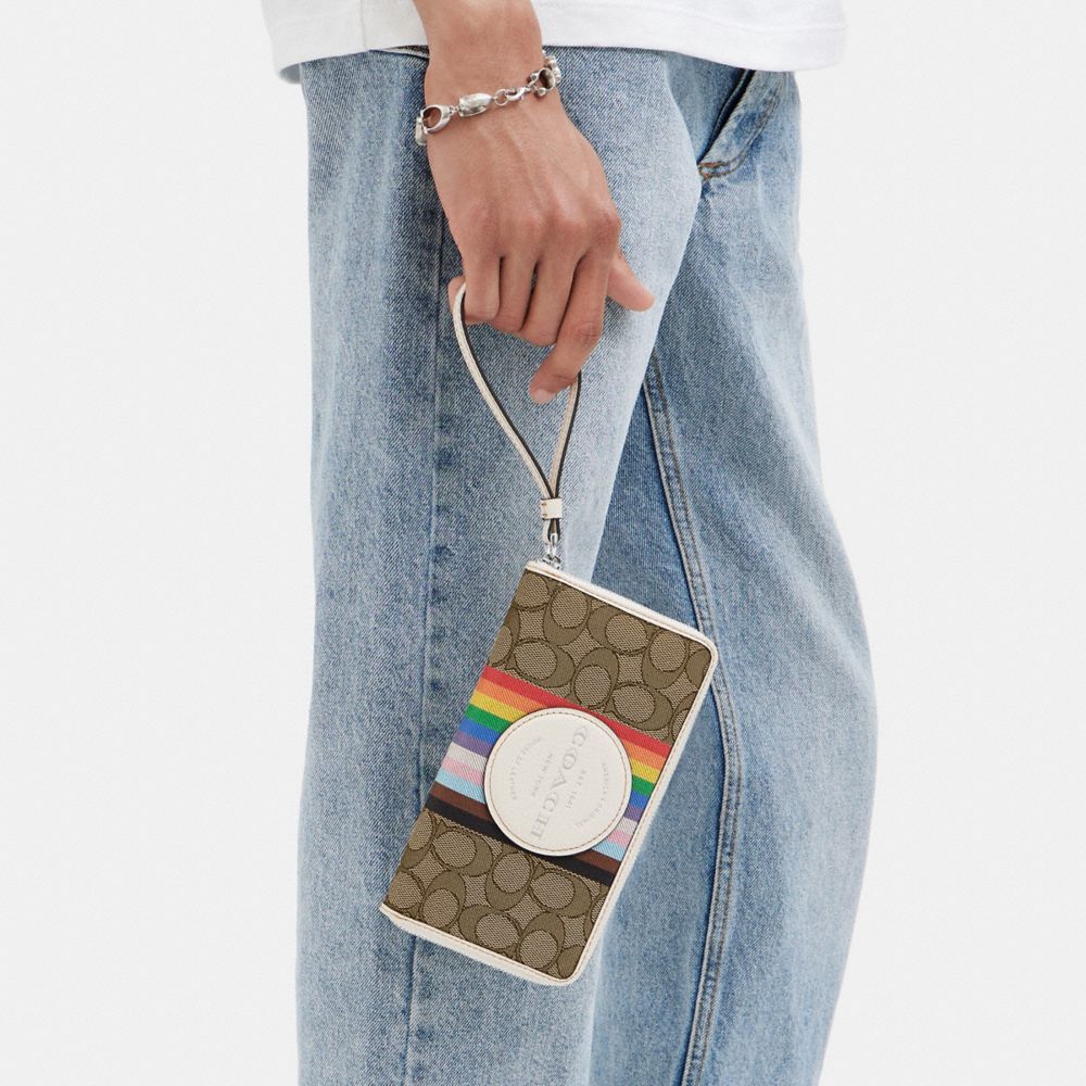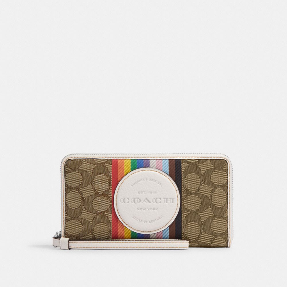 DEMPSEY LARGE PHONE WALLET IN SIGNATURE JACQUARD WITH RAINBOW STRIPE AND COACH PATCH (COACH CJ660)
