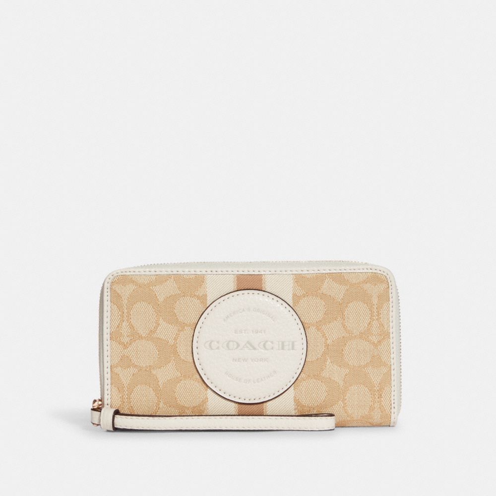 DEMPSEY LARGE PHONE WALLET IN SIGNATURE JACQUARD WITH STRIPE AND COACH PATCH (COACH C9073)