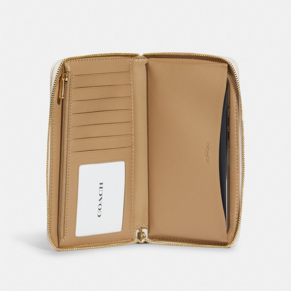 COACH FACTORY OUTLET PRICE CHART - C9073 - DEMPSEY LARGE PHONE WALLET IN SIGNATURE JACQUARD WITH STRIPE AND COACH PATCH - GOLD/LIGHT KHAKI CHALK