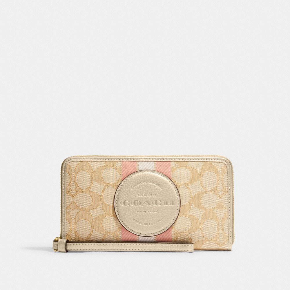 DEMPSEY LARGE PHONE WALLET IN SIGNATURE JACQUARD WITH STRIPE AND COACH PATCH (COACH CF441)
