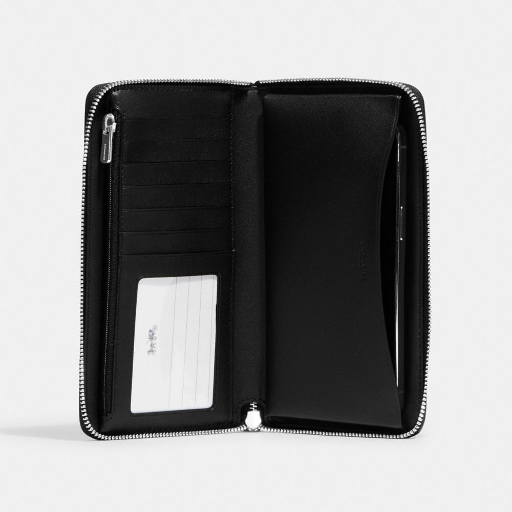 | Canvas and refined pebble leather | Six credit card slots | ID window | Zip coin pocket | Inside phone pocket | Zip-around closure | Wrist strap attached | 7 1/4" (L) x 4" (H) x 3/4" (W)|Style No. CK443|