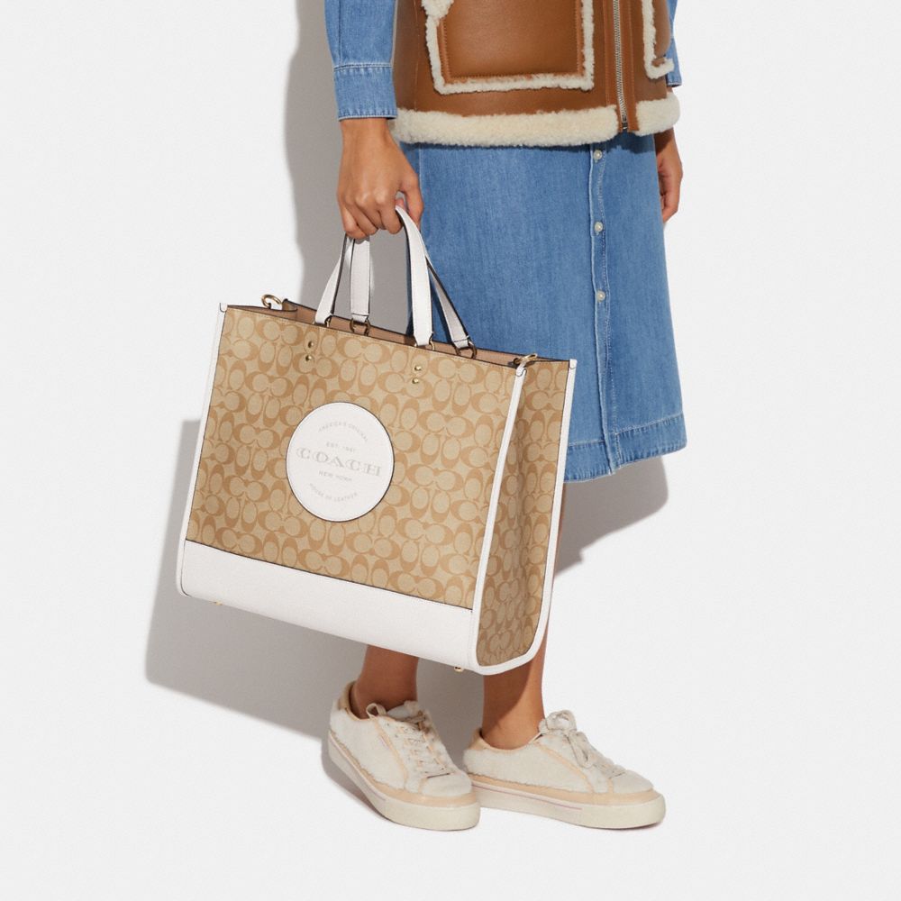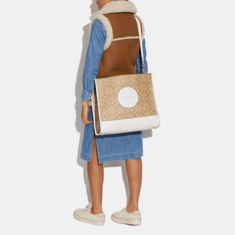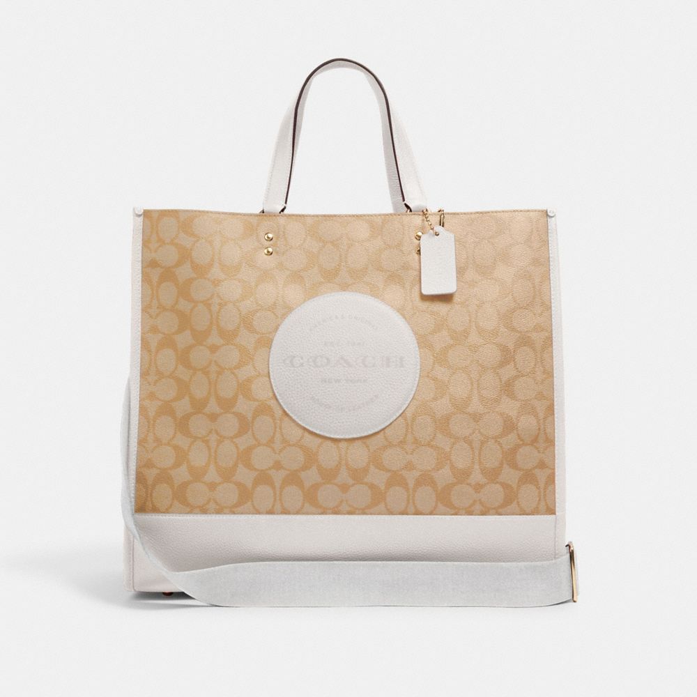 COACH FACTORY OUTLET PRICE CHART - C1789 - DEMPSEY TOTE 40 IN SIGNATURE CANVAS WITH COACH PATCH - GOLD/LIGHT KHAKI CHALK