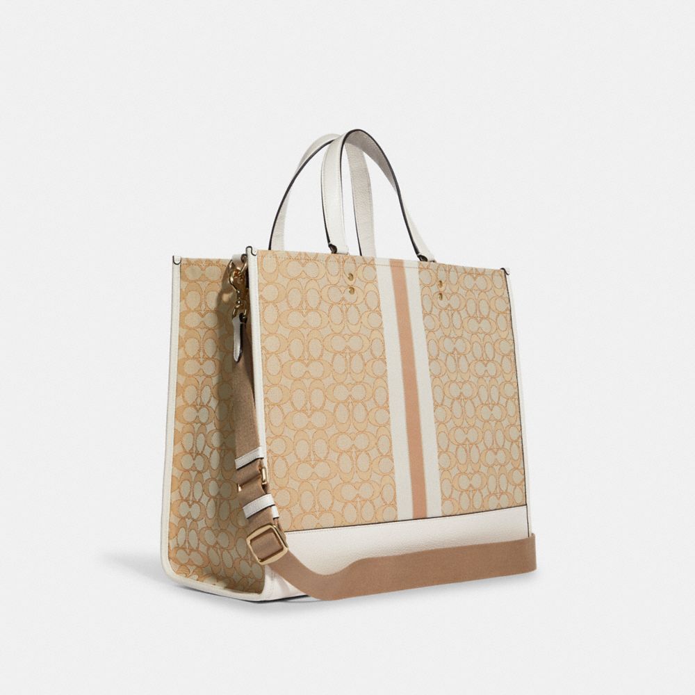 COACH FACTORY OUTLET PRICE CHART - C8418 - DEMPSEY TOTE 40 IN SIGNATURE JACQUARD WITH STRIPE AND COACH PATCH - GOLD/LIGHT KHAKI CHALK
