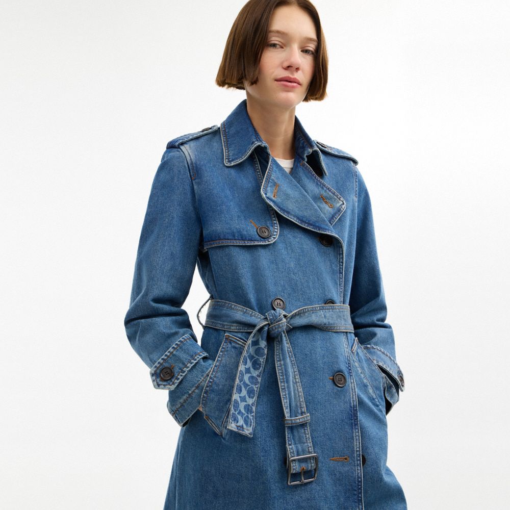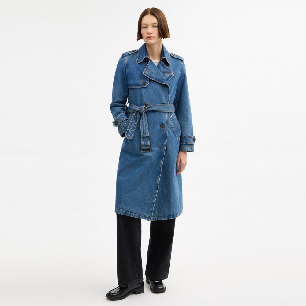DENIM LONG TRENCH COAT (COACH CCY92)