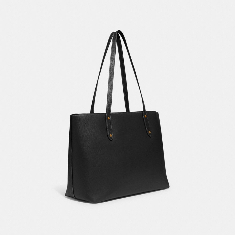 | Polished pebble leather | Inside snap pocket | Zip-top closure | Handles with 9 3/4" drop | Fits a 13" laptop | 15 1/4" (L) x 13 1/4" (H) x 6" (W) | Disney x Coach | ©Disney|Style No. 89975|