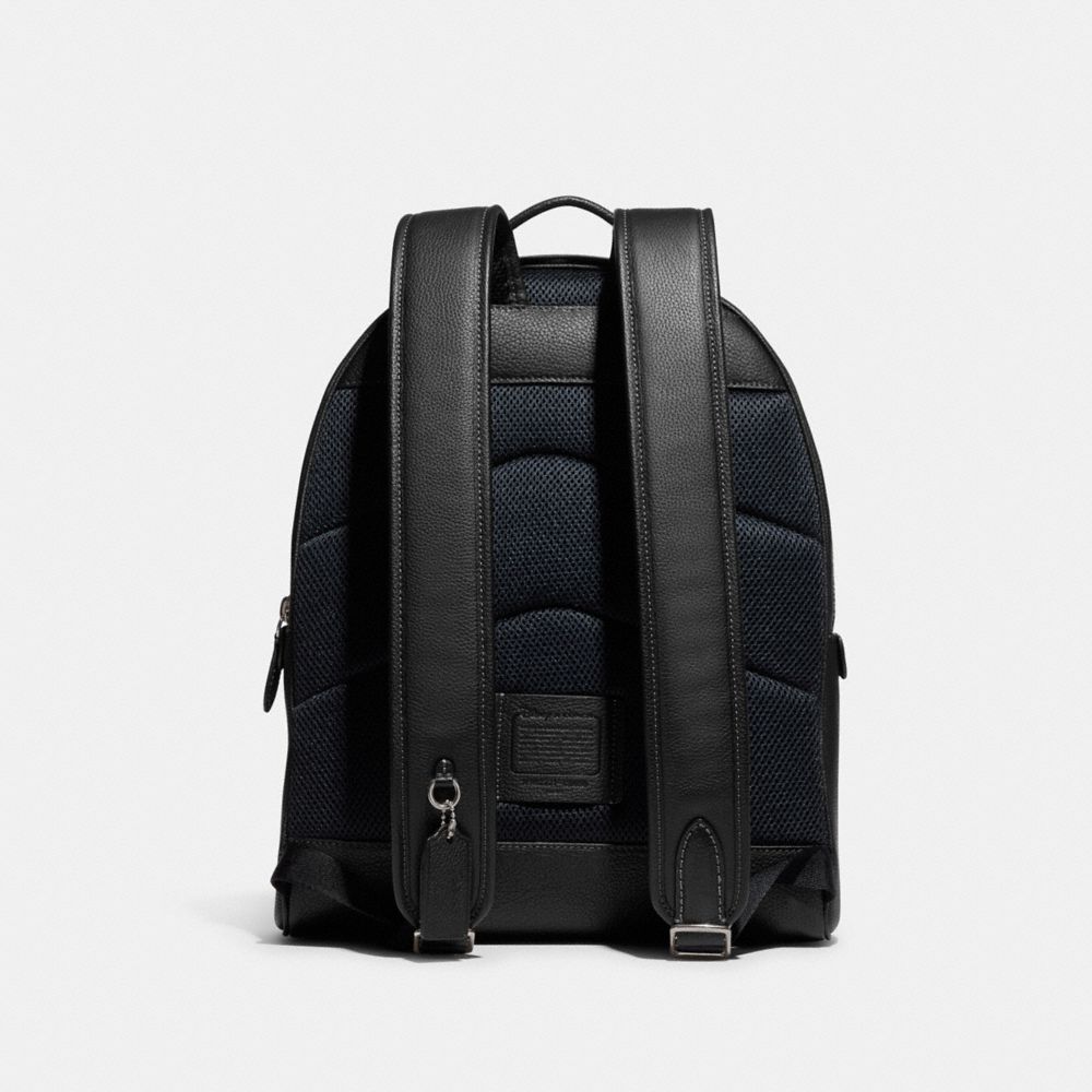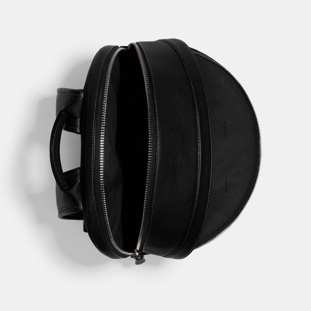 | Soft polished pebble leather | Inside zip, cell phone and multifunction pockets | Inside tech sleeve | Double zip closure, fabric lining | Top handle with 2 1/2" drop | Outside zip pocket | Adjustable shoulder straps | Fits a 15" laptop | 11 3/4" (L) x 15 3/4" (H) x 5" (W) | Disney x Coach | ©Disney|Style No. C8488|