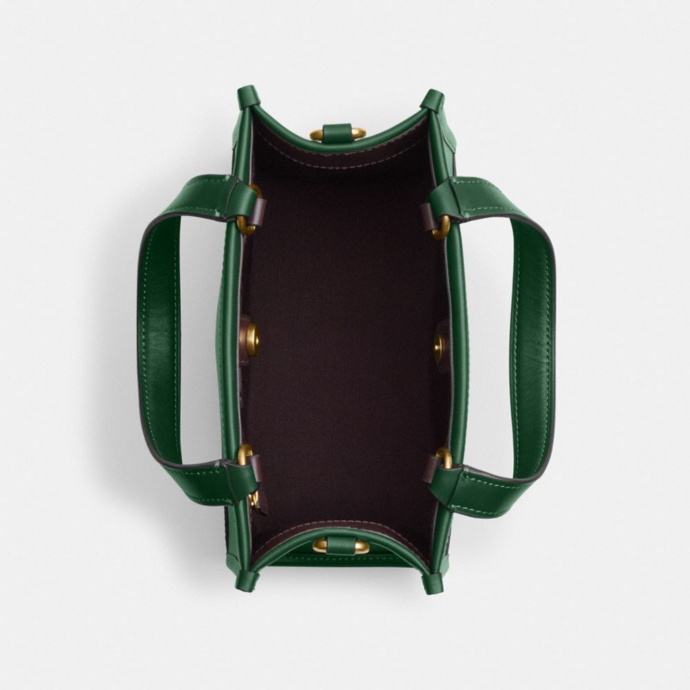 | Refined calf leather | Inside zip and multifunction pockets | Snap closure, fabric lining | Handles with 4 1/4" drop | Detachable strap with 22 1/2" drop for shoulder or crossbody wear | Four protective feet at base | 8 3/4" (L) x 7 3/4" (H) x 4 1/4" (W) | Disney x Coach | ©Disney|Style No. CM844|