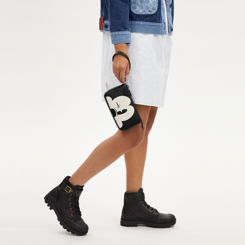 | Refined pebble leather | Two credit card slots | Inside multifunction pocket | Zip-top closure, fabric lining | Handle with 6 1/4" drop | 7 1/2" (L) x 4 1/2" (H) x 2" (W) | Disney x Coach | ©Disney|Style No. CN506|