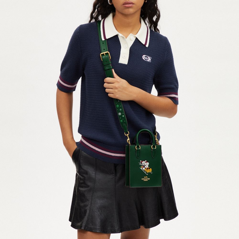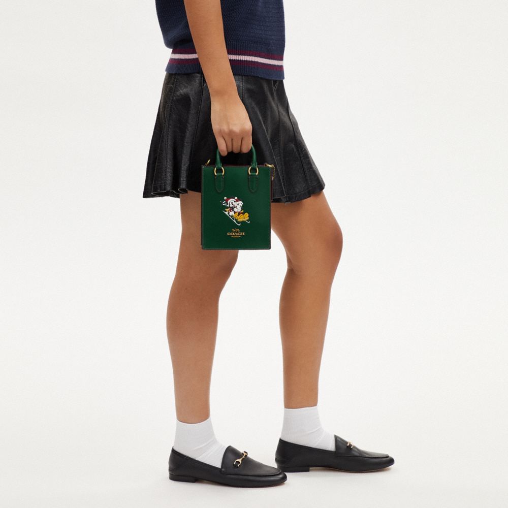 COACH FACTORY OUTLET PRICE CHART - CN021 - DISNEY X COACH NORTH SOUTH MINI TOTE WITH SLED MOTIF - BRASS/DARK PINE