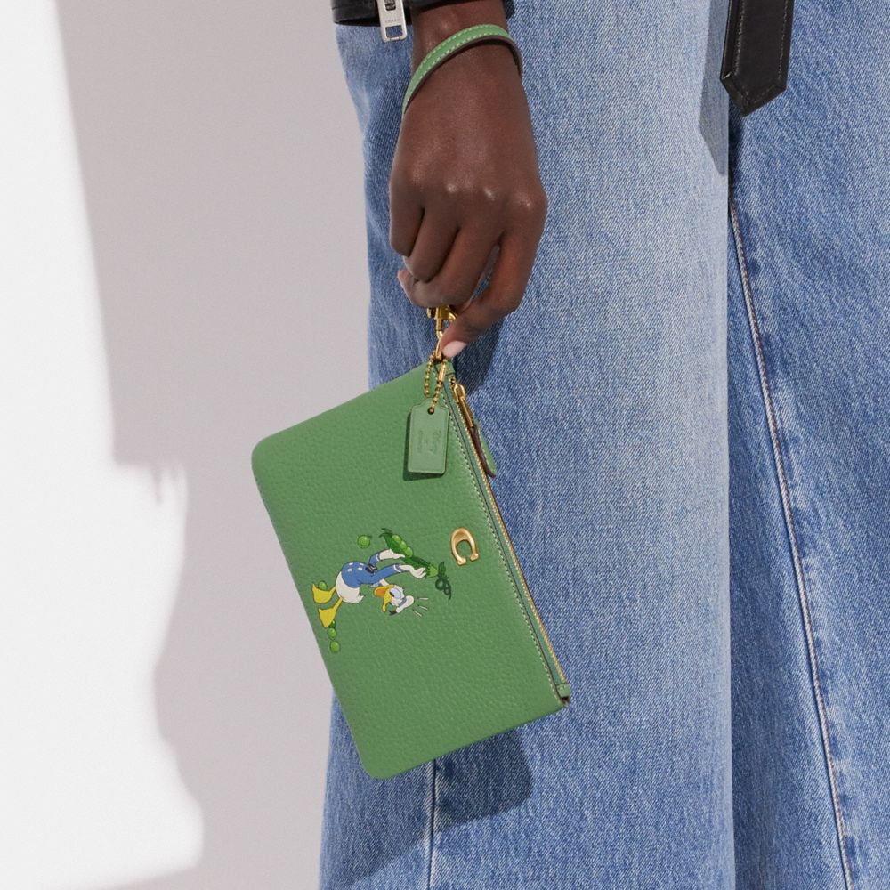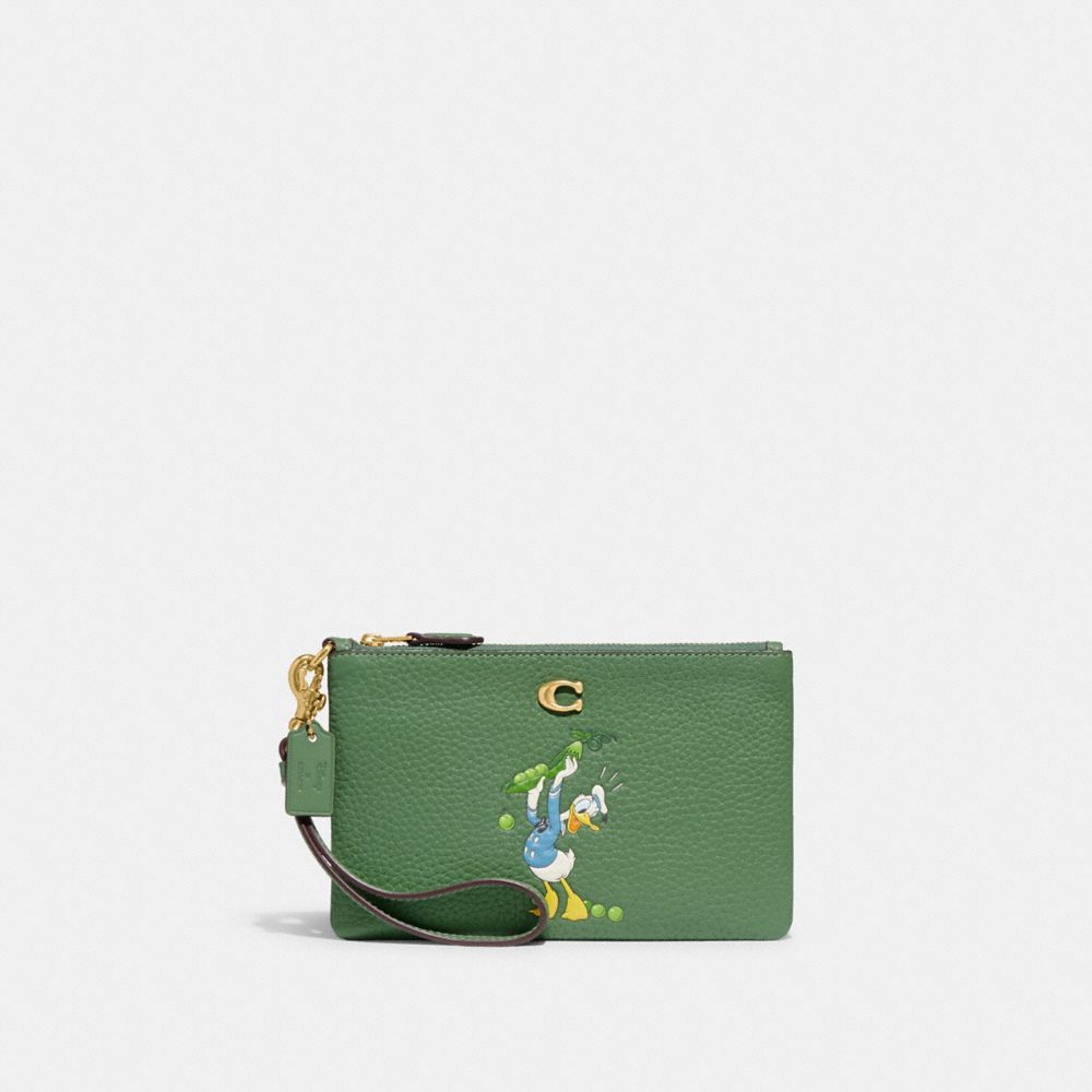 COACH FACTORY OUTLET PRICE CHART - CH499 - DISNEY X COACH SMALL WRISTLET IN REGENERATIVE LEATHER WITH DONALD DUCK - BRASS/SOFT GREEN