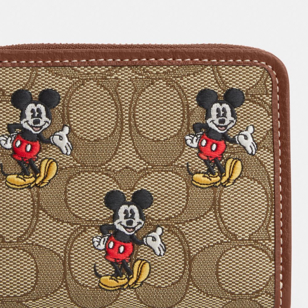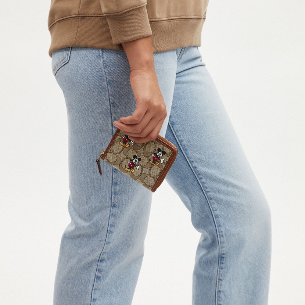 DISNEY X COACH SMALL ZIP AROUND WALLET IN SIGNATURE JACQUARD WITH MICKEY MOUSE PRINT (COACH CN035)
