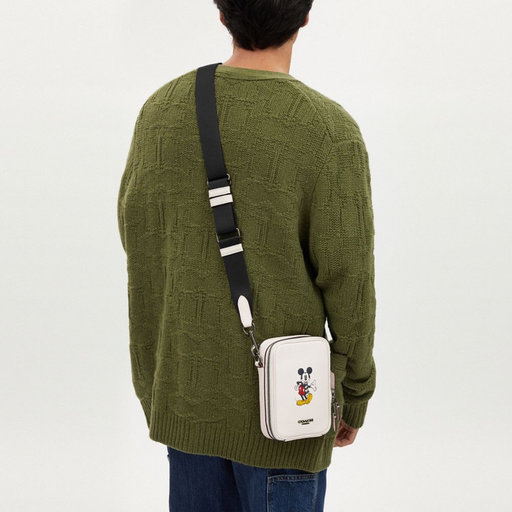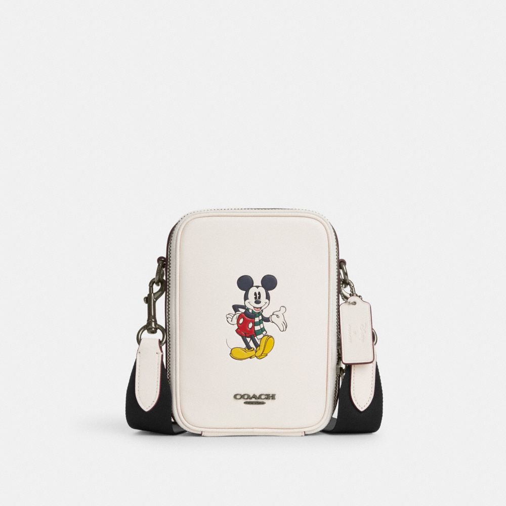 | Smooth calf leather | Three credit card slots | Zip closure, fabric lining | Detachable strap with 21" drop for shoulder or crossbody wear | 5" (L) x 7" (H) x 2" (W) | Disney x Coach | ©Disney|Style No. CM028|