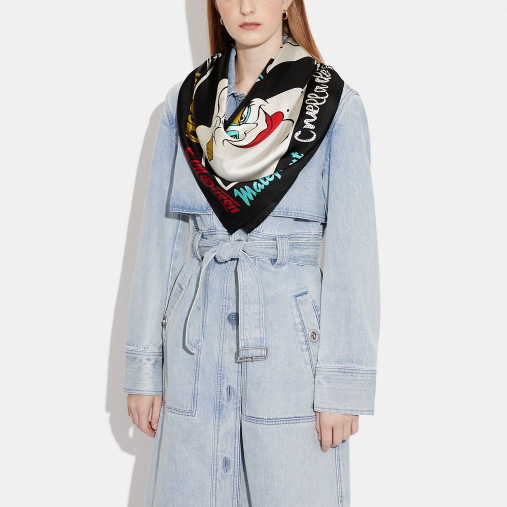DISNEY X COACH VILLAINS PRINT SILK SQUARE SCARF (COACH CD141)