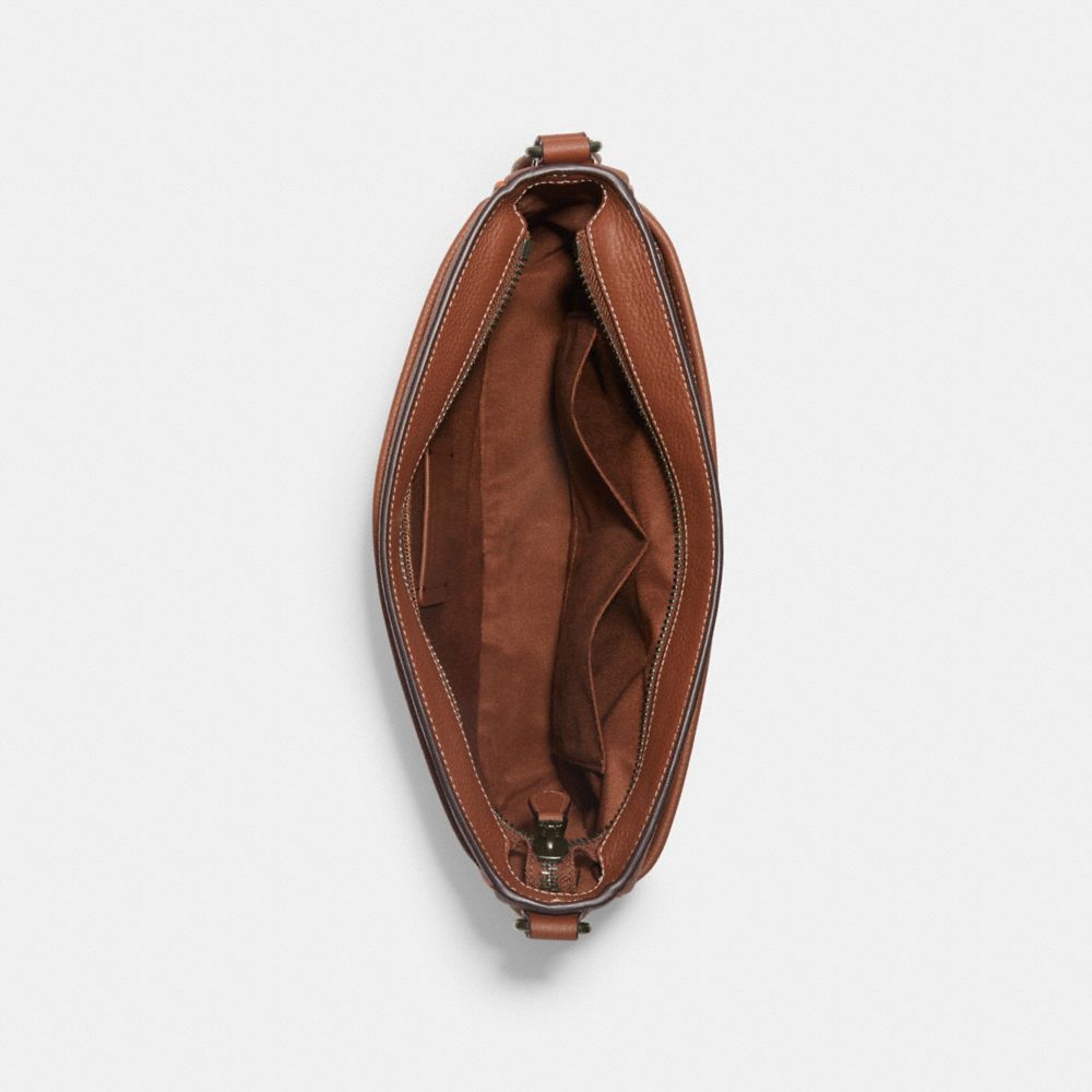 | Signature coated canvas and refined pebble leather | Inside zip and multifunction pockets | Zip-top closure, fabric lining | Outside zip and slip pockets | Adjustable strap with 25" drop for shoulder or crossbody wear | 11 3/4" (L) x 8 3/4" (H) x 2 1/4" (W)|Style No. CH076|