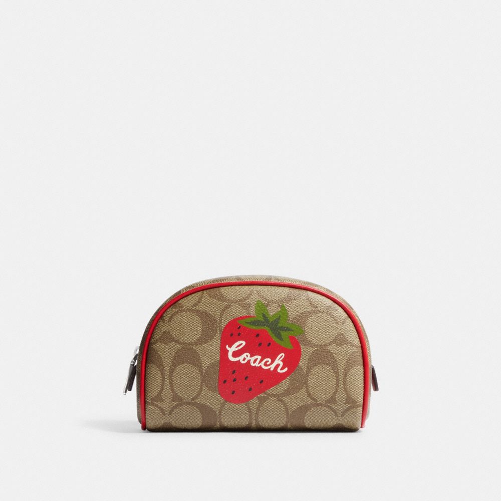 DOME COSMETIC CASE IN SIGNATURE CANVAS WITH WILD STRAWBERRY (COACH CH528)