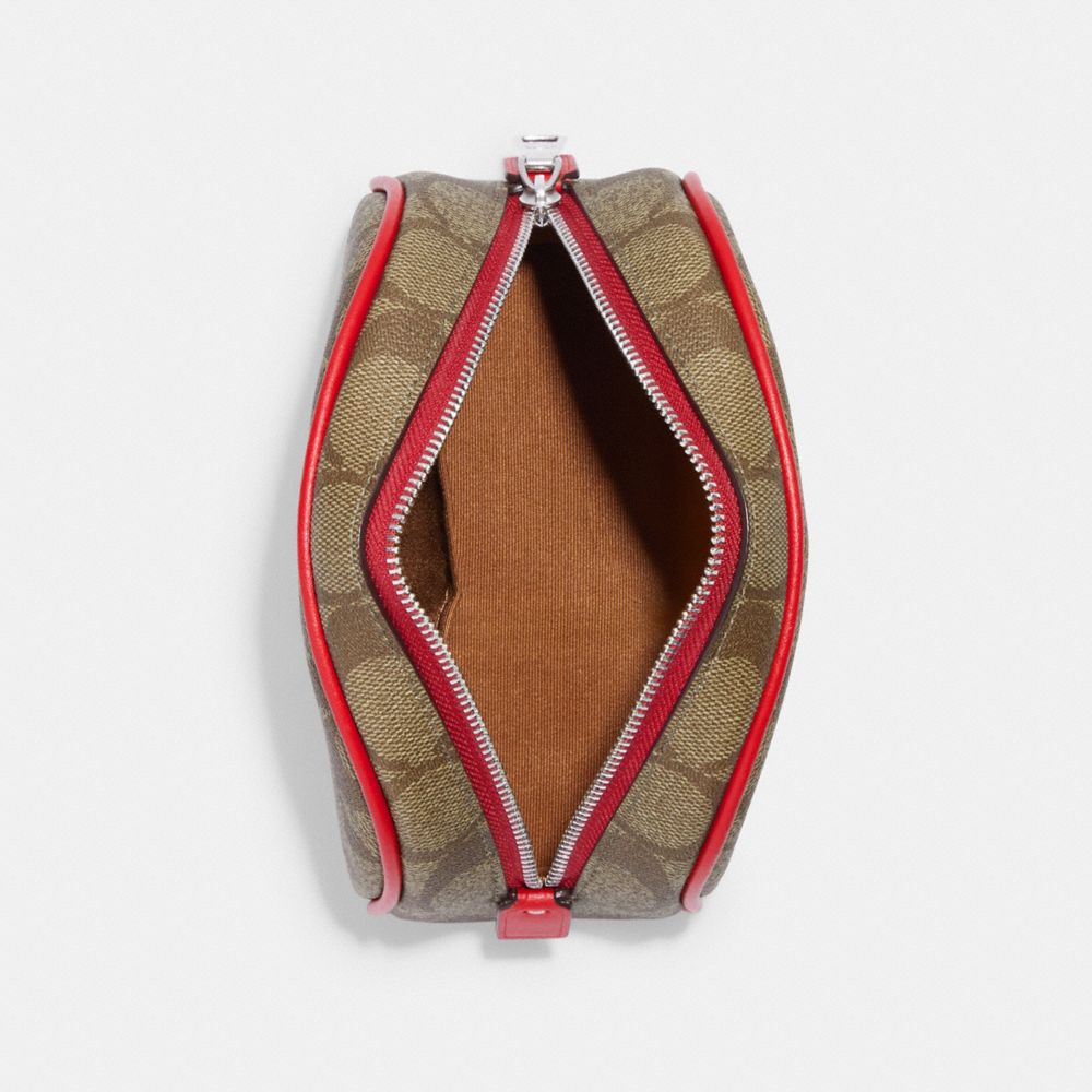 COACH FACTORY OUTLET PRICE CHART - CH528 - DOME COSMETIC CASE IN SIGNATURE CANVAS WITH WILD STRAWBERRY - SILVER/KHAKI/ELECTRIC RED