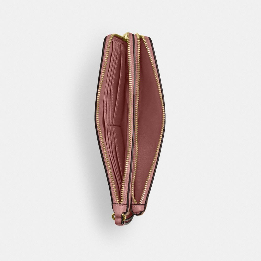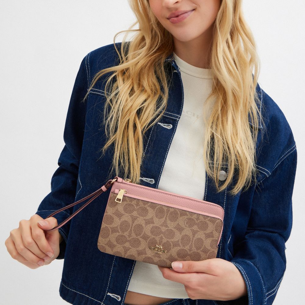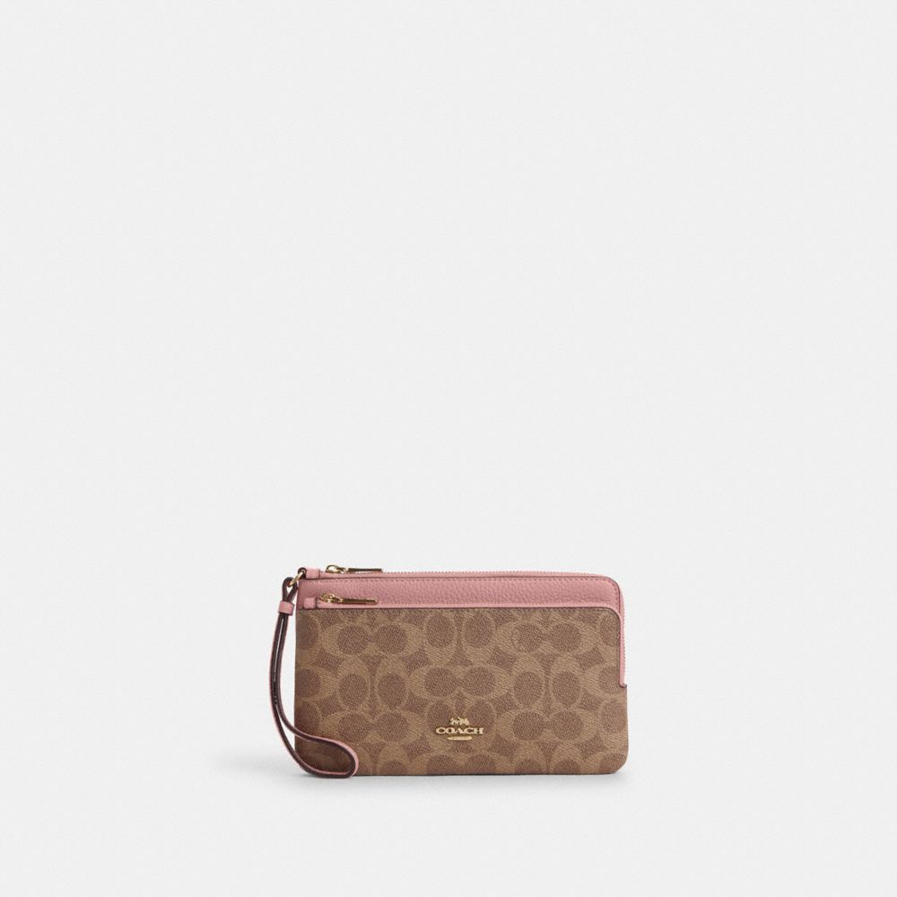 COACH FACTORY OUTLET PRICE CHART - CX161 - DOUBLE ZIP WALLET IN SIGNATURE CANVAS - GOLD/TAN/PINK PETAL