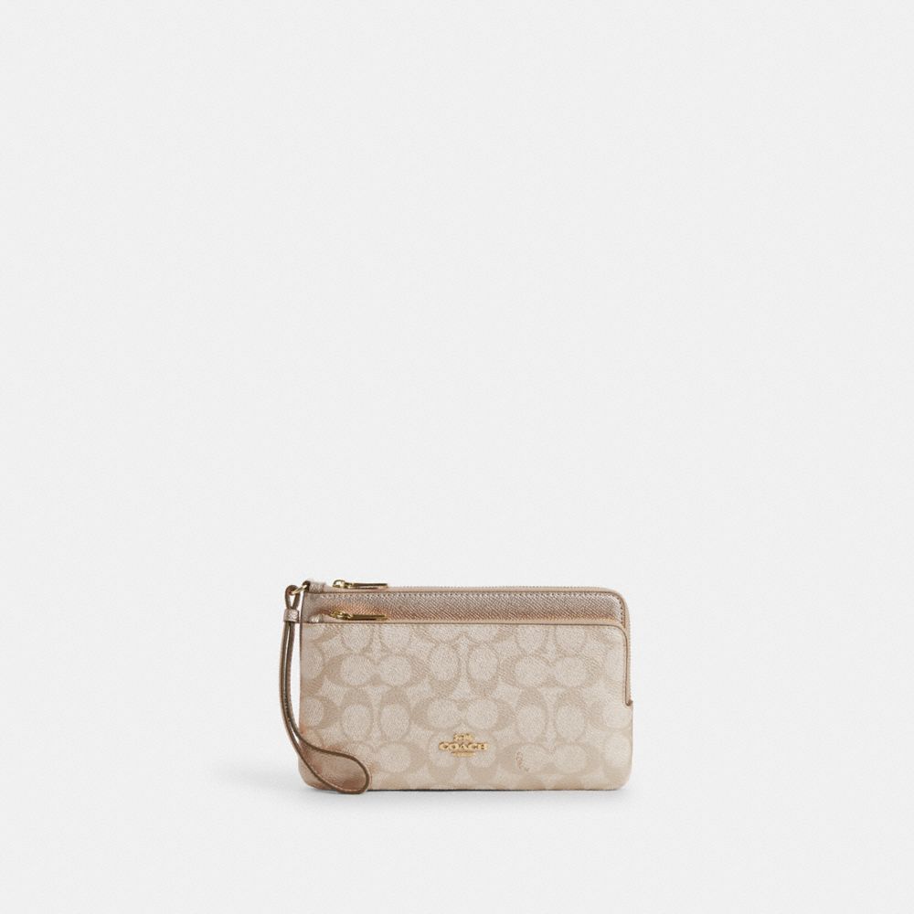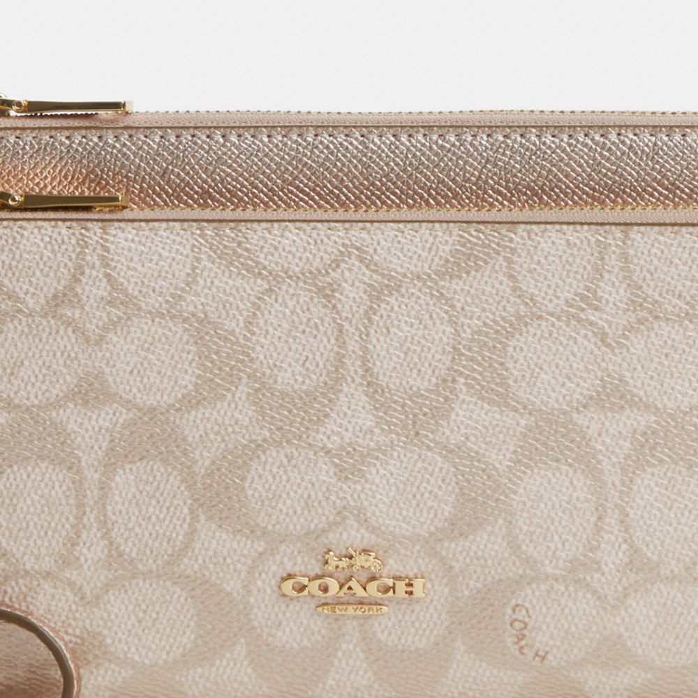COACH FACTORY OUTLET PRICE CHART - CW968 - DOUBLE ZIP WALLET IN SIGNATURE CANVAS - GOLD/CHAMPAGNE MULTI