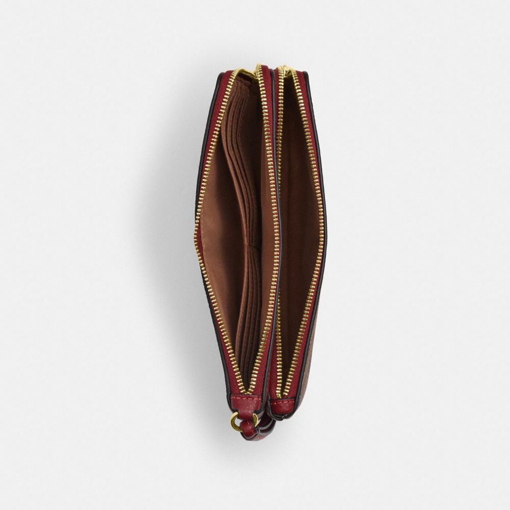 | Signature coated canvas and refined pebble leather | Eight credit card slots | Double zip closure, fabric lining | Wrist strap attached | 8" (L) x 4 3/4" (H) x 1" (W) | Fits all phone sizes up to an iPhone X and Samsung S7 Edge|Style No. CZ763|