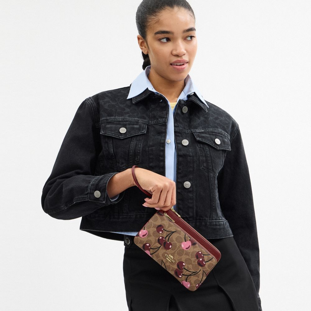 DOUBLE ZIP WALLET IN SIGNATURE CANVAS WITH CHERRY PRINT (COACH CZ763)