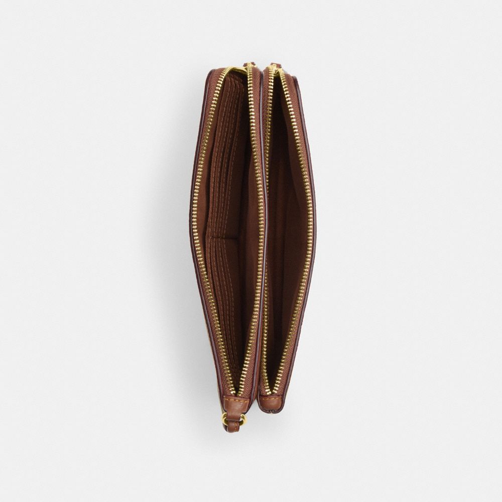 | Signature coated canvas and refined pebble leather | Eight credit card slots | Inside open pockets | Double zip closure, fabric lining | Wrist strap attached | 8" (L) x 4 3/4" (H) x 1" (W) | Fits all phone sizes up to an iPhone X and Samsung S7 Edge|Style No. CR926|