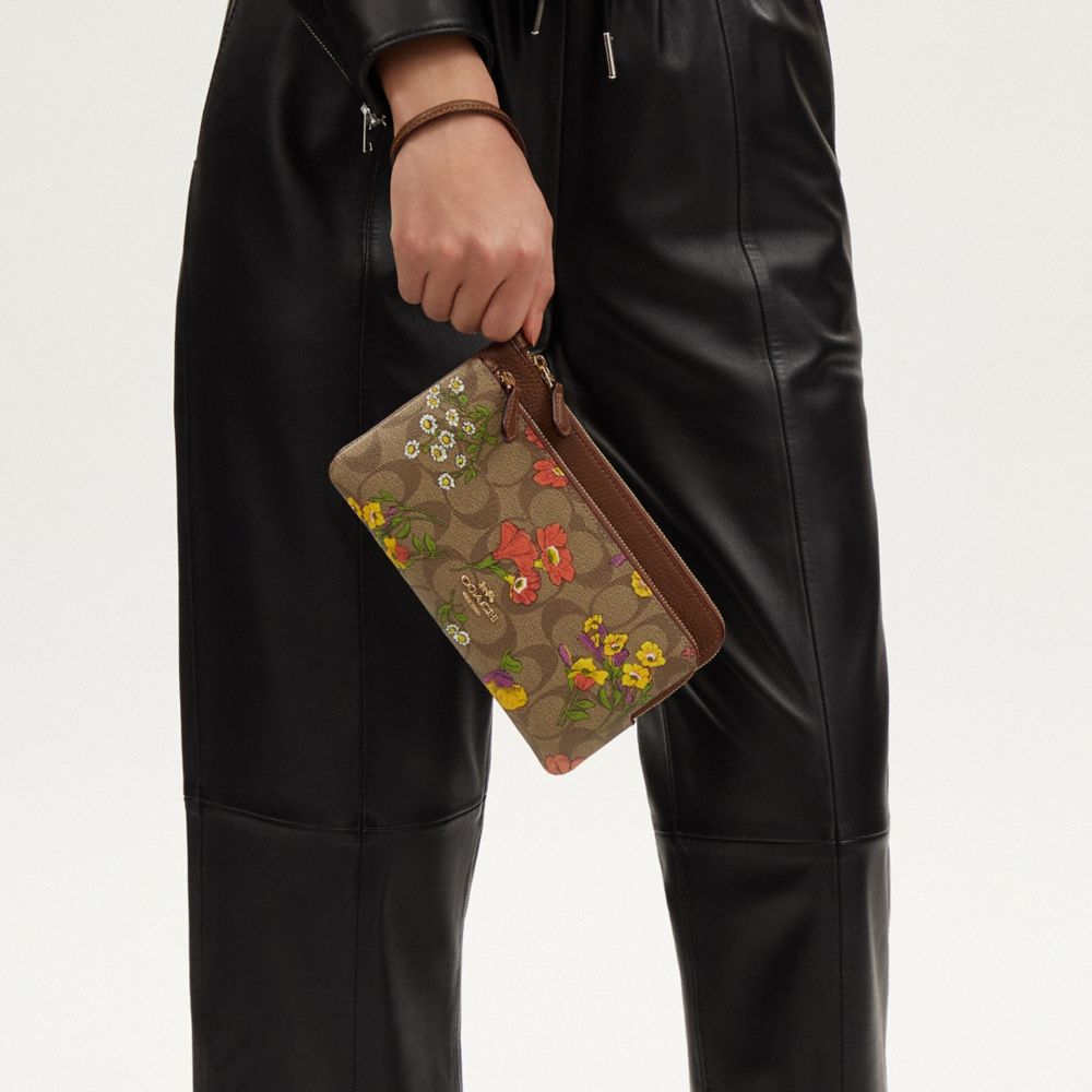DOUBLE ZIP WALLET IN SIGNATURE CANVAS WITH FLORAL PRINT (COACH CR926)