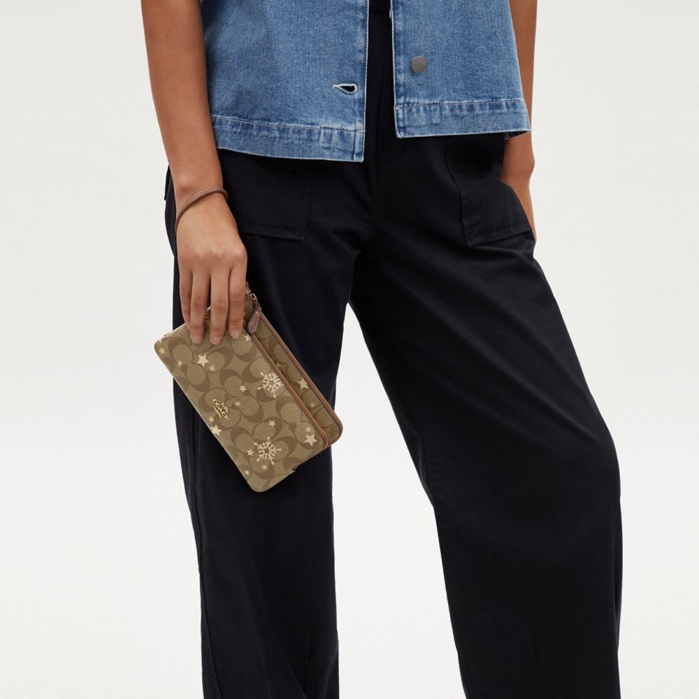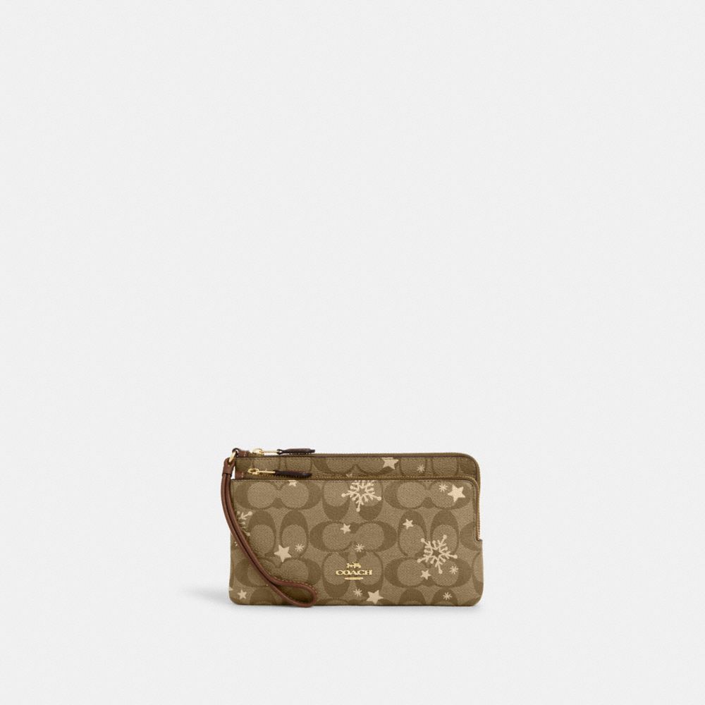 DOUBLE ZIP WALLET IN SIGNATURE CANVAS WITH STAR AND SNOWFLAKE PRINT (COACH CN759)