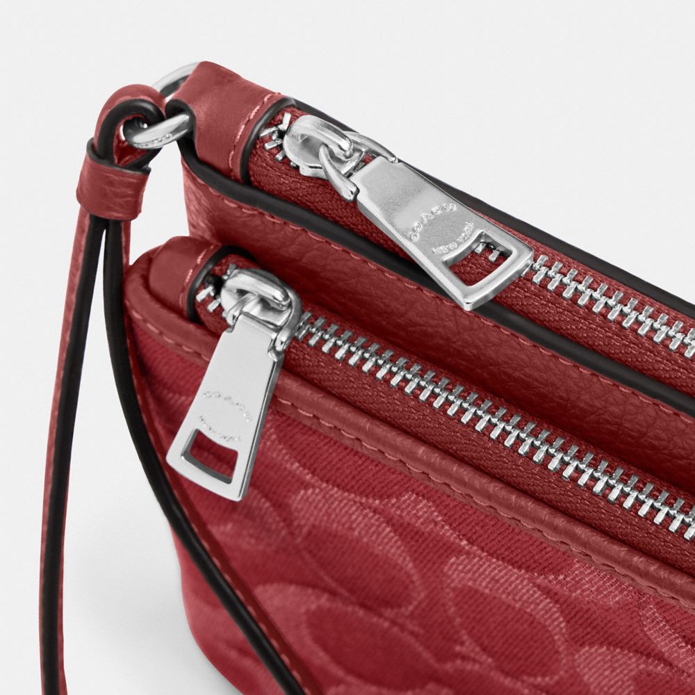 COACH FACTORY OUTLET PRICE CHART - CDN22 - DOUBLE ZIP WALLET IN SIGNATURE DENIM - SILVER/TRUE RED