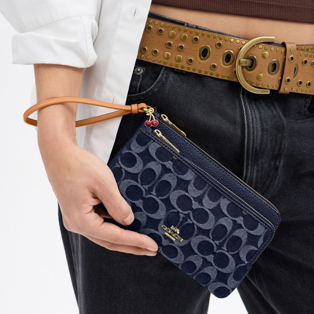 DOUBLE ZIP WALLET IN SIGNATURE DENIM (COACH CZ321)