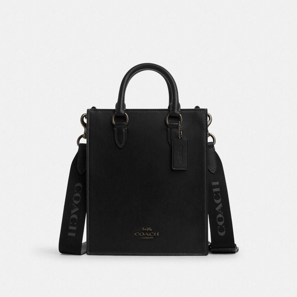 | Signature coated canvas and smooth calf leather | Inside multifunction pocket | Zip-top closure, fabric lining | Handles with 3" drop | Detachable strap with 25" drop for shoulder or crossbody wear | 8" (L) x 9 3/4" (H) x 3" (W)|Style No. CP050|