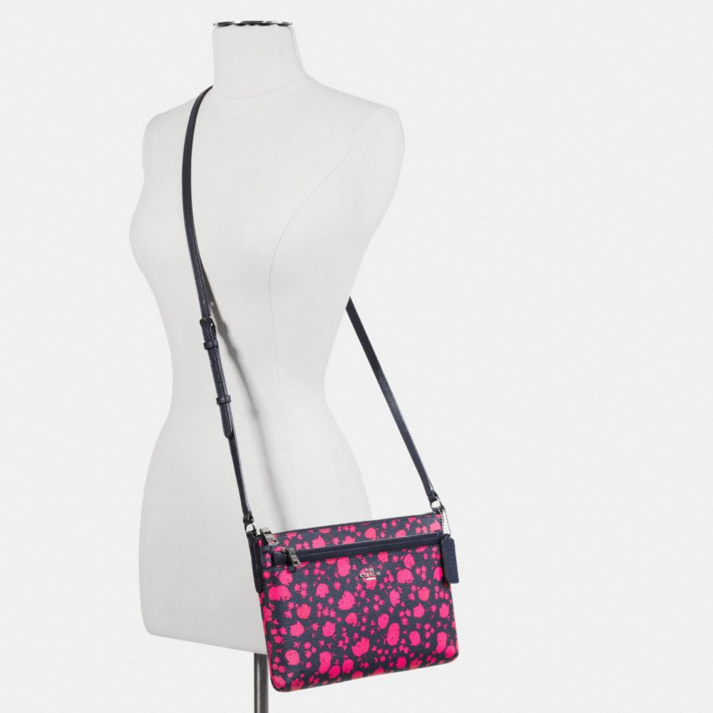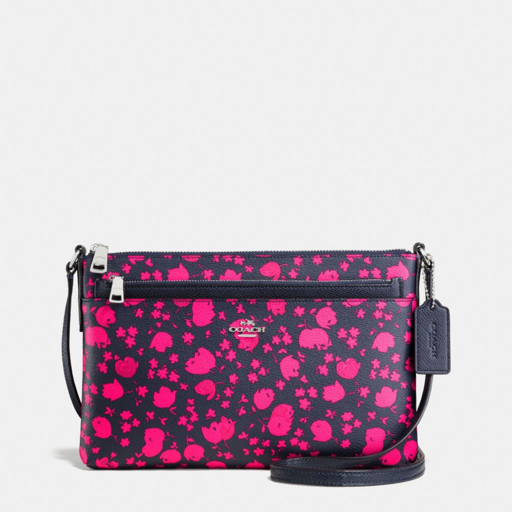COACH FACTORY OUTLET PRICE CHART - F56838 - EAST/WEST CROSSBODY WITH POP UP POUCH IN PRAIRIE CALICO PRINT COATED CANVAS - SILVER/MIDNIGHT PINK RUBY