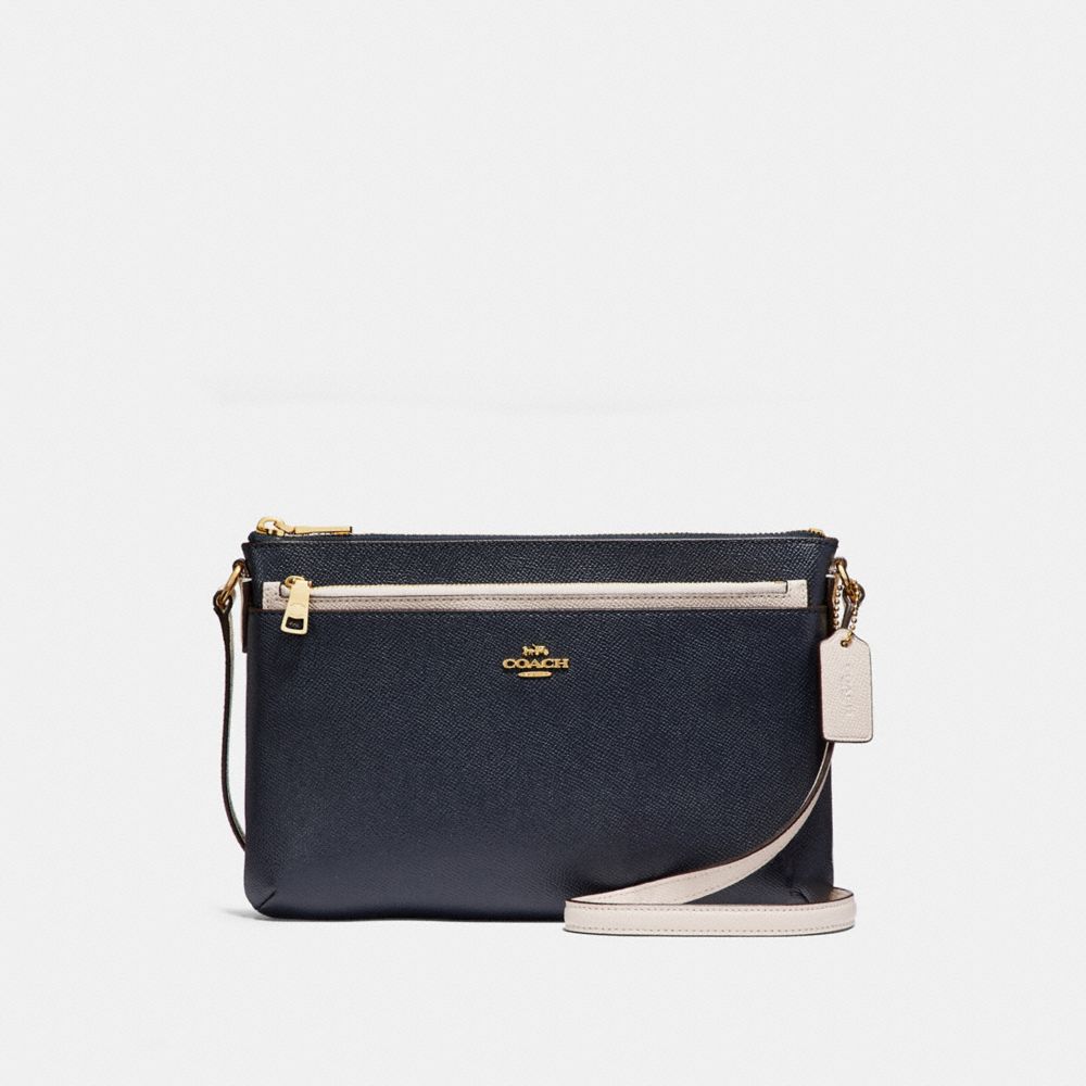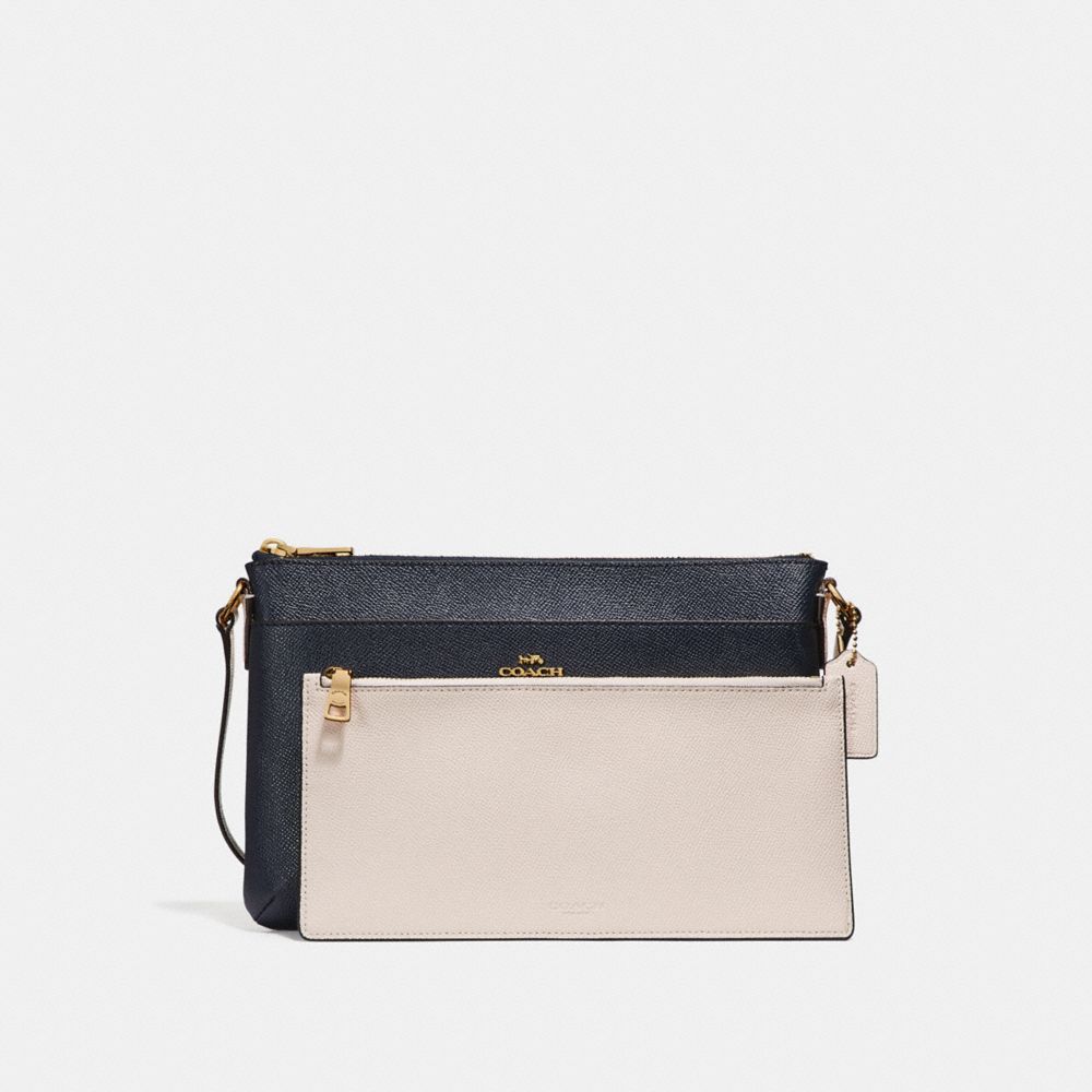 COACH FACTORY OUTLET PRICE CHART - F28382 - EAST/WEST CROSSBODY WITH POP-UP POUCH IN COLORBLOCK - MIDNIGHT/CHALK/LIGHT GOLD