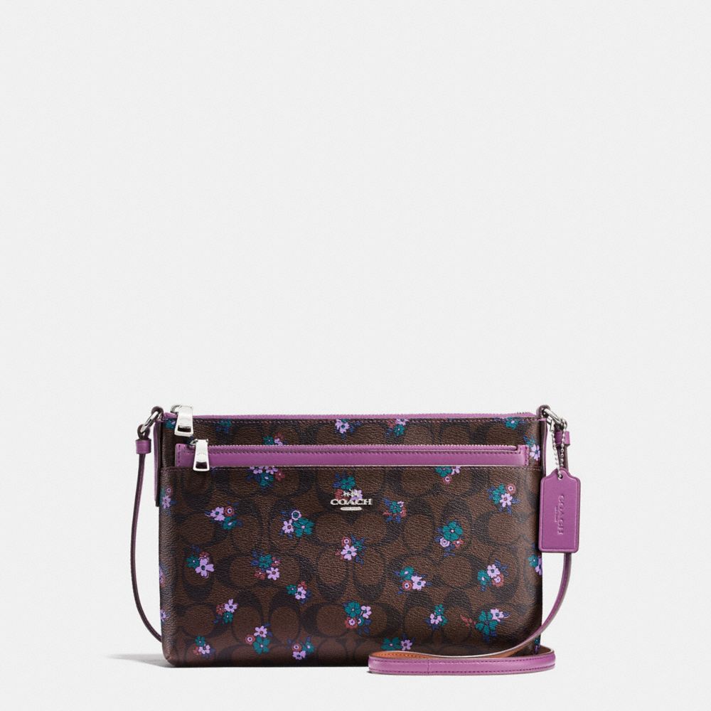 COACH FACTORY OUTLET PRICE CHART - F59841 - EAST/WEST CROSSBODY WITH POP-UP POUCH IN SIGNATURE RANCH FLORAL COATED CANVAS - SILVER/BROWN MULTI