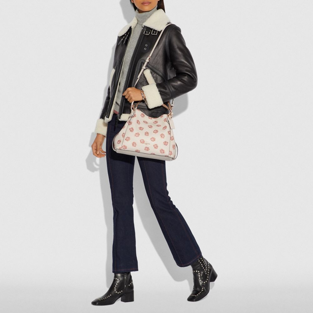 COACH FACTORY OUTLET PRICE CHART - 32313 - EDIE SHOULDER BAG 28 WITH ROSE PRINT - LI/CHALK