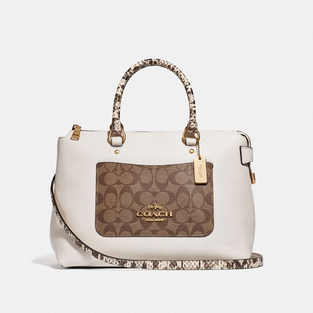 COACH FACTORY OUTLET PRICE CHART - F34280 - EMMA SATCHEL IN SIGNATURE CANVAS COLORBLOCK - KHAKI MULTI /IMITATION GOLD
