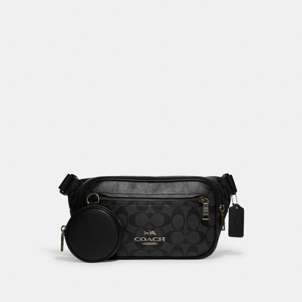 COACH FACTORY OUTLET PRICE CHART - CJ506 - ELIAS BELT BAG IN SIGNATURE CANVAS - GUNMETAL/CHARCOAL