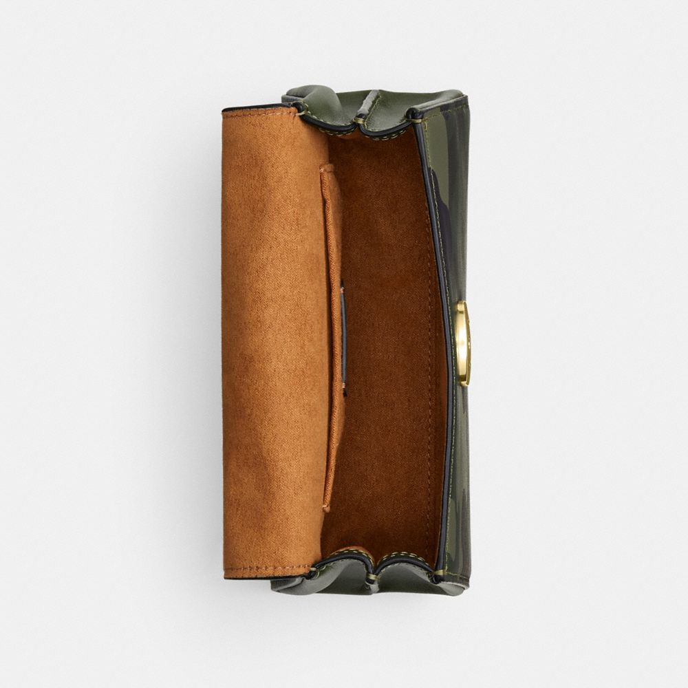 | Printed coated canvas and smooth leather | Inside multifunction pocket | Snap closure, fabric lining | Handle with 2 1/4" drop | Detachable strap with 21 3/4" drop for shoulder or crossbody wear | 7" (L) x 4 3/4" (H) x 2 3/4" (W)|Style No. CW184|