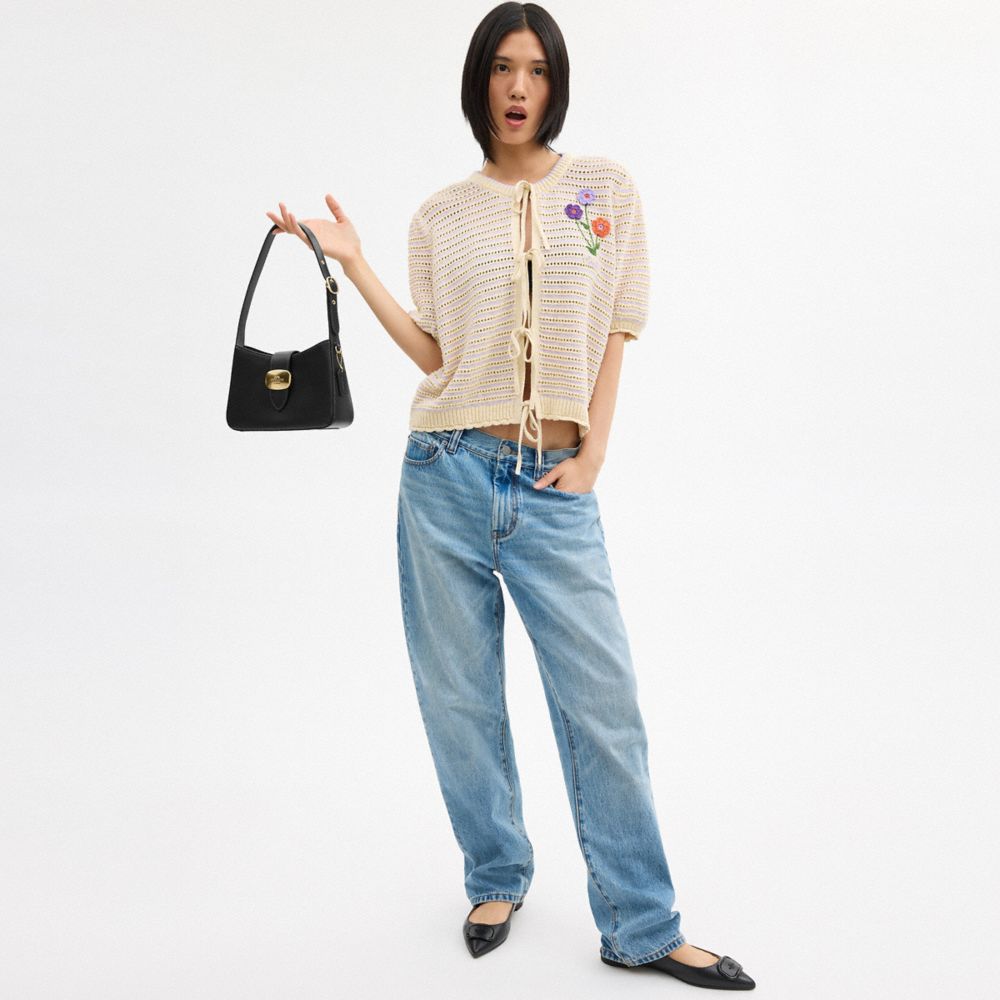 | Refined calf leather | Two credit card slots | Inside zip pocket | Snap closure, fabric lining | Adjustable handle with 9 1/4" drop | 9 3/4" (L) x 6 1/2" (H) x 2 1/2" (W)|Style No. CP004|