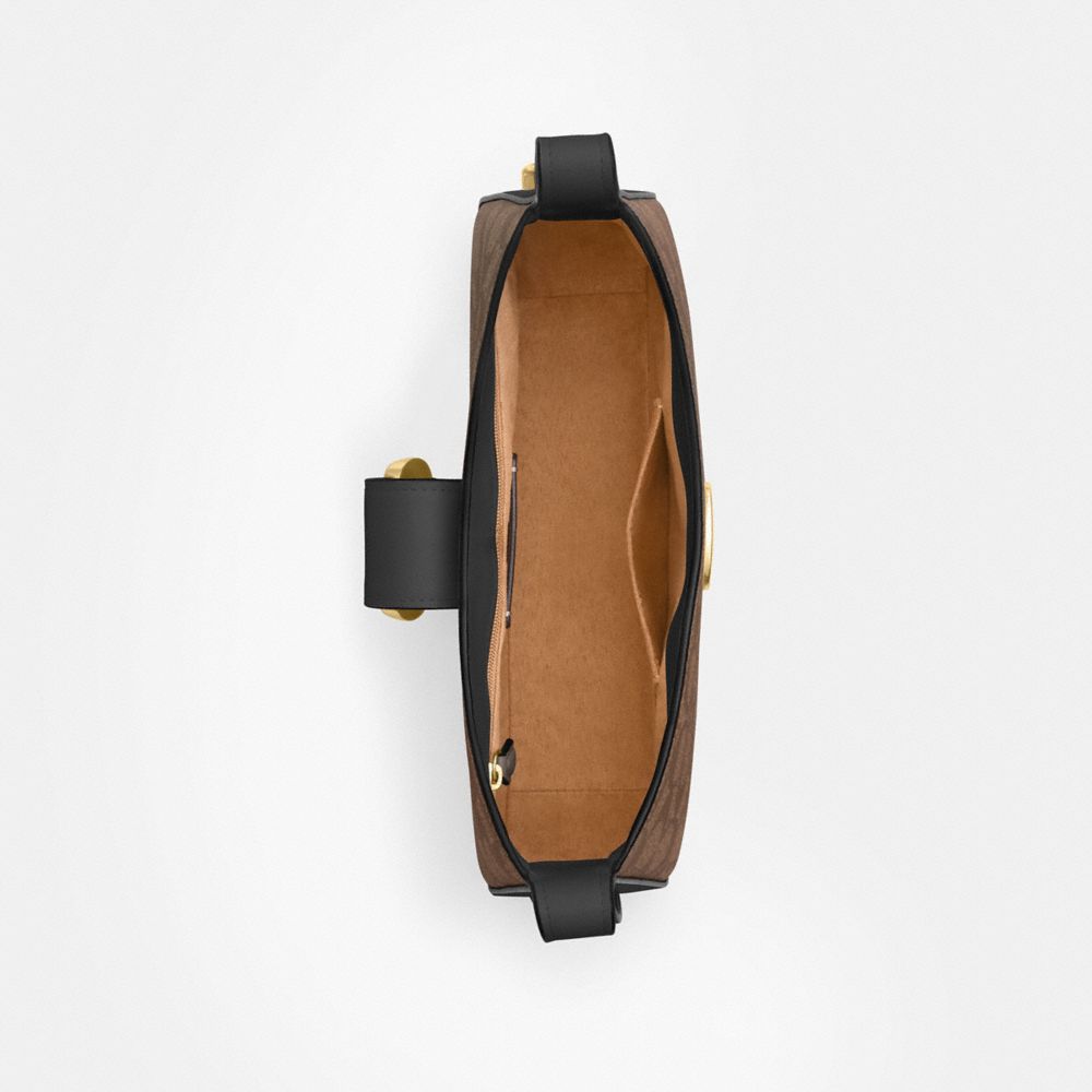 | Signature coated canvas and smooth leather | Two credit card slots | Inside zip pocket | Snap closure, fabric lining | Adjustable handle with 9 1/4" drop | 9 3/4" (L) x 6 1/2" (H) x 2 1/2" (W)|Style No. CP005|