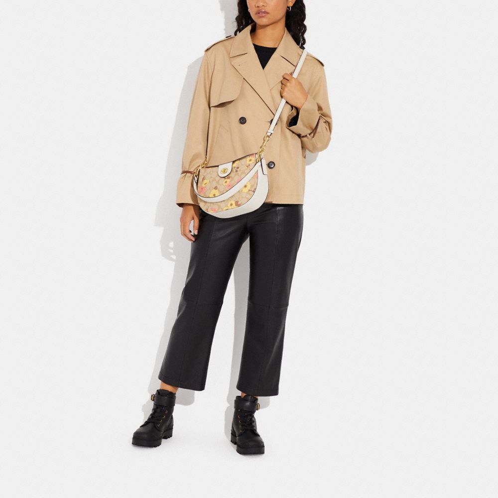 | Signature coated canvas and smooth leather | Inside zip pocket | Turnlock closure, fabric lining | Detachable handle with 9 1/2" drop | Detachable strap with 22" drop for shoulder or crossbody wear | 10" (L) x 7 3/4" (H) x 3 1/4" (W)|Style No. CH347|