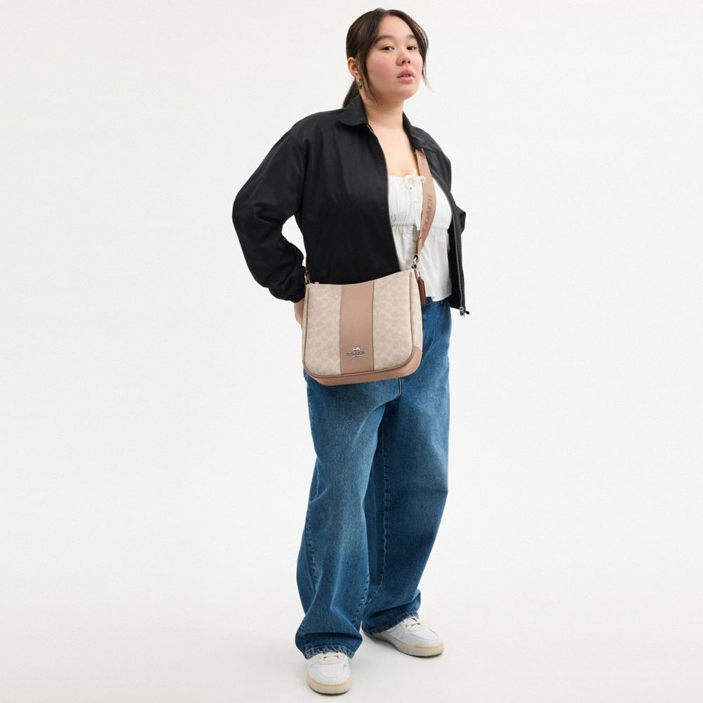 COACH FACTORY OUTLET PRICE CHART - CZ183 - ELLIE FILE BAG IN SIGNATURE CANVAS WITH STRIPE - SILVER/SAND/TAUPE