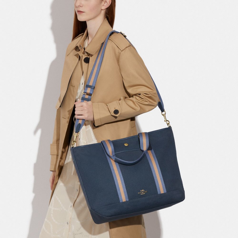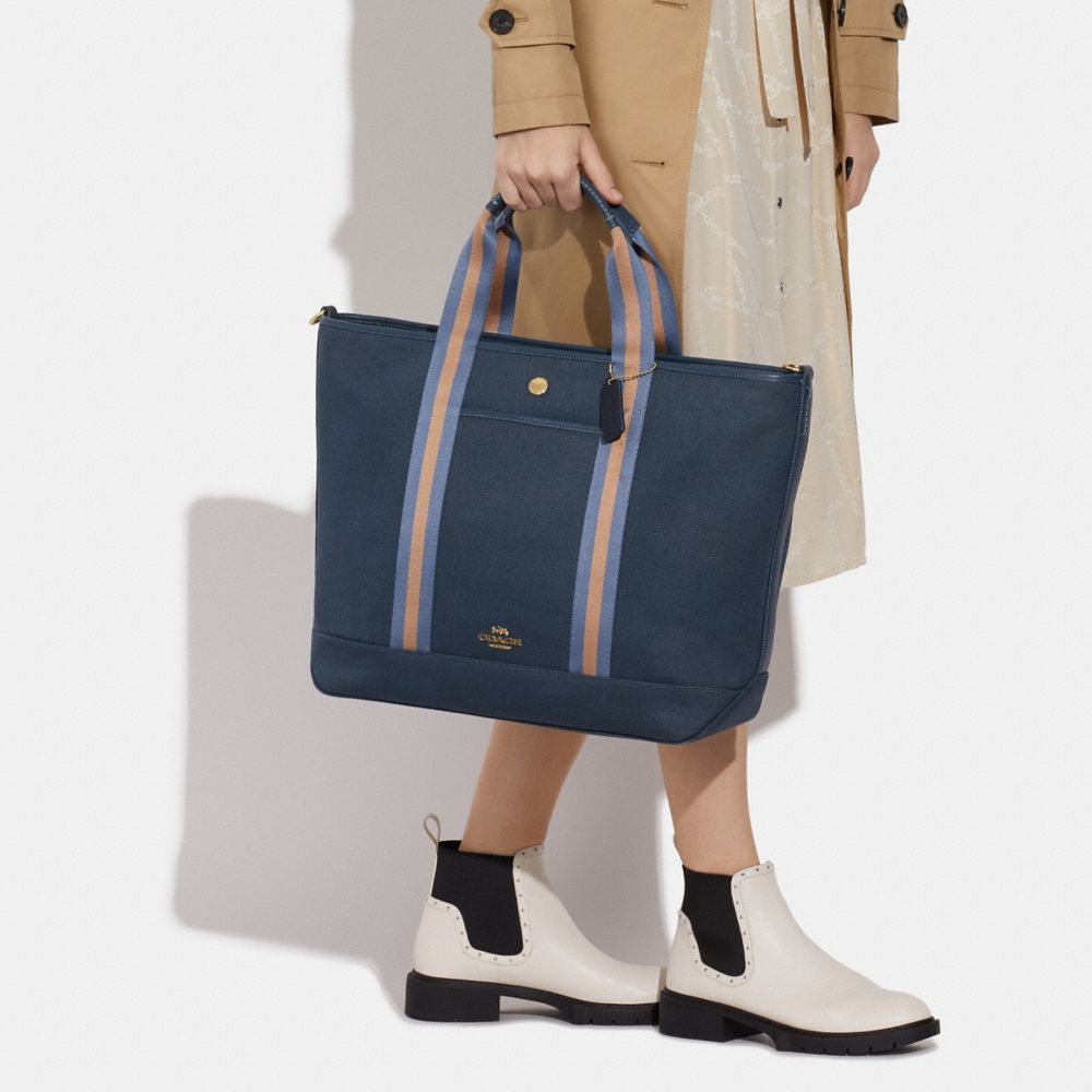 | Canvas and refined pebble leather | Inside zip and multifunction pockets | Zip-top closure, fabric lining | Handles with 6" drop | Outside open pockets | Detachable strap with 15 1/4" drop for shoulder or crossbody wear | 14 1/4" (L) x 13 1/2" (H) x 6 1/4" (W)|Style No. CA627|