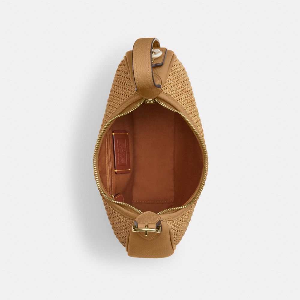 Straw and refined pebble leather| Inside zip pocket| Zip-top closure, recycled polyester lining| Adjustable handle with 6 3/4" drop| Detachable strap with 21 3/4" drop for shoulder or crossbody wear| 9" (L) x 5" (H) x 2 1/4" (W)|Style No. CDX20