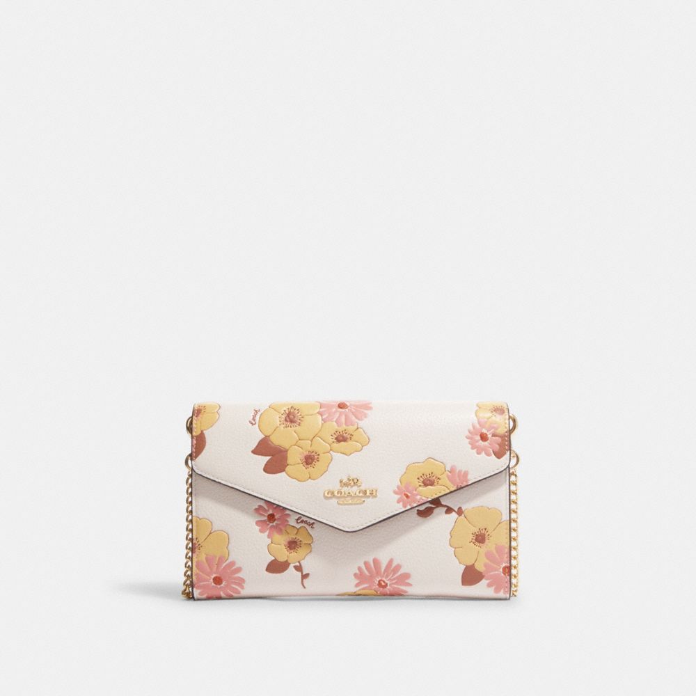 COACH FACTORY OUTLET PRICE CHART - CH205 - ENVELOPE CLUTCH CROSSBODY WITH FLORAL CLUSTER PRINT - GOLD/CHALK MULTI