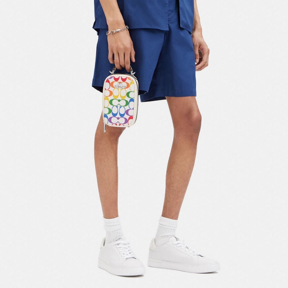 EVA PHONE CROSSBODY IN RAINBOW SIGNATURE CANVAS (COACH CK189)