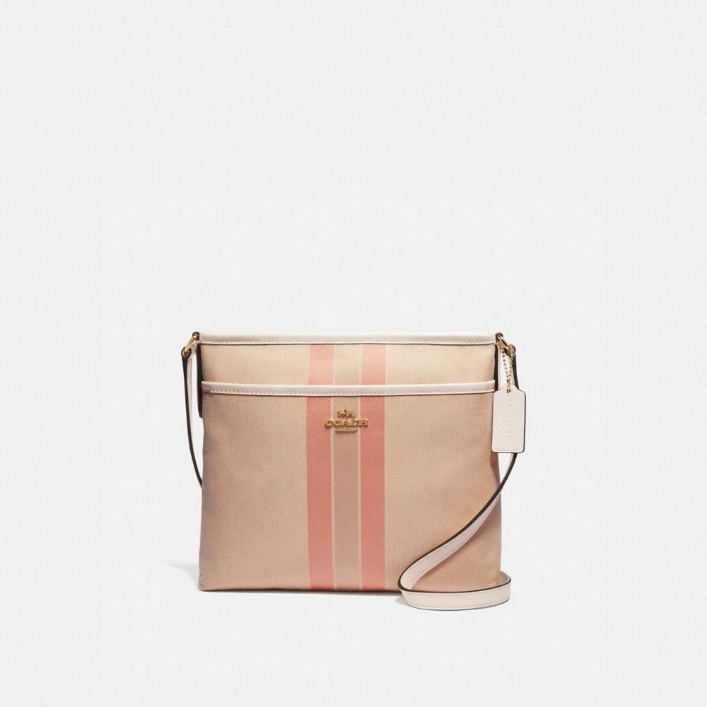 COACH FACTORY OUTLET PRICE CHART - F73157 - FILE CROSSBODY IN SIGNATURE JACQUARD WITH VARSITY STRIPE - LIGHT KHAKI/CORAL/GOLD