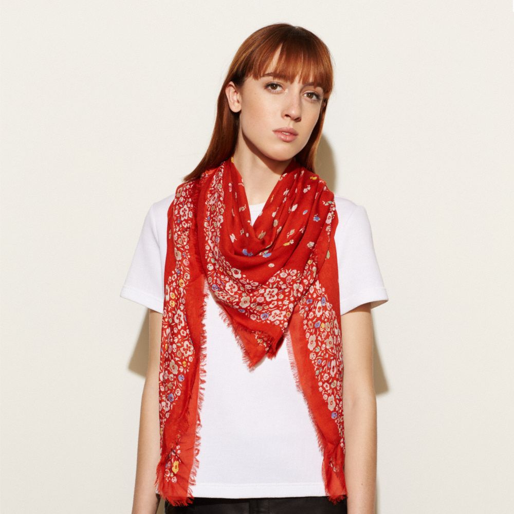 COACH FACTORY OUTLET PRICE CHART - F77779 - FLORAL WOVEN OVERSIZED SQUARE SCARF - CARMINE