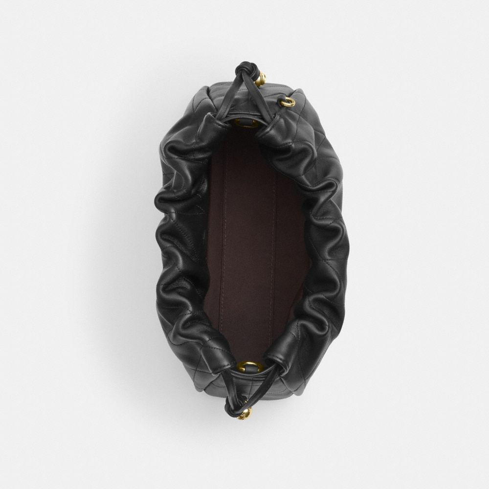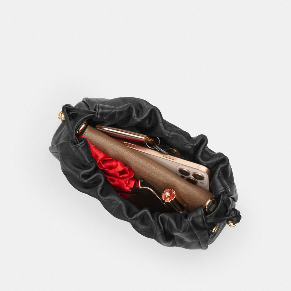 Nappa leather| Inside zip pocket| Drawstring and magnetic snap closures, recycled polyester lining| Detachable handle with 9" drop| Detachable strap with 21 1/2" drop for shoulder or crossbody wear| 10 1/4" (L) x 6" (H) x 2 3/4" (W)|Style No. CCZ54