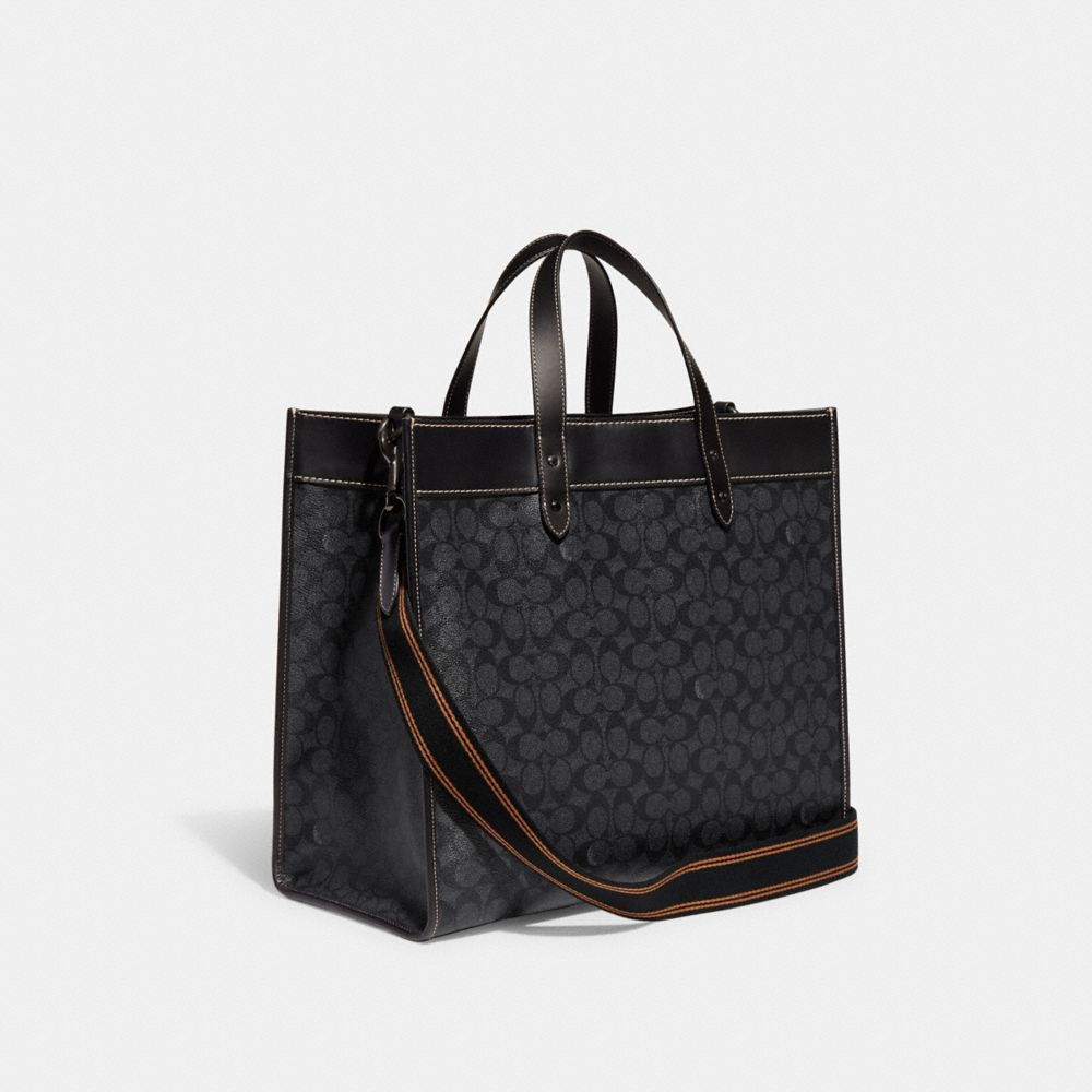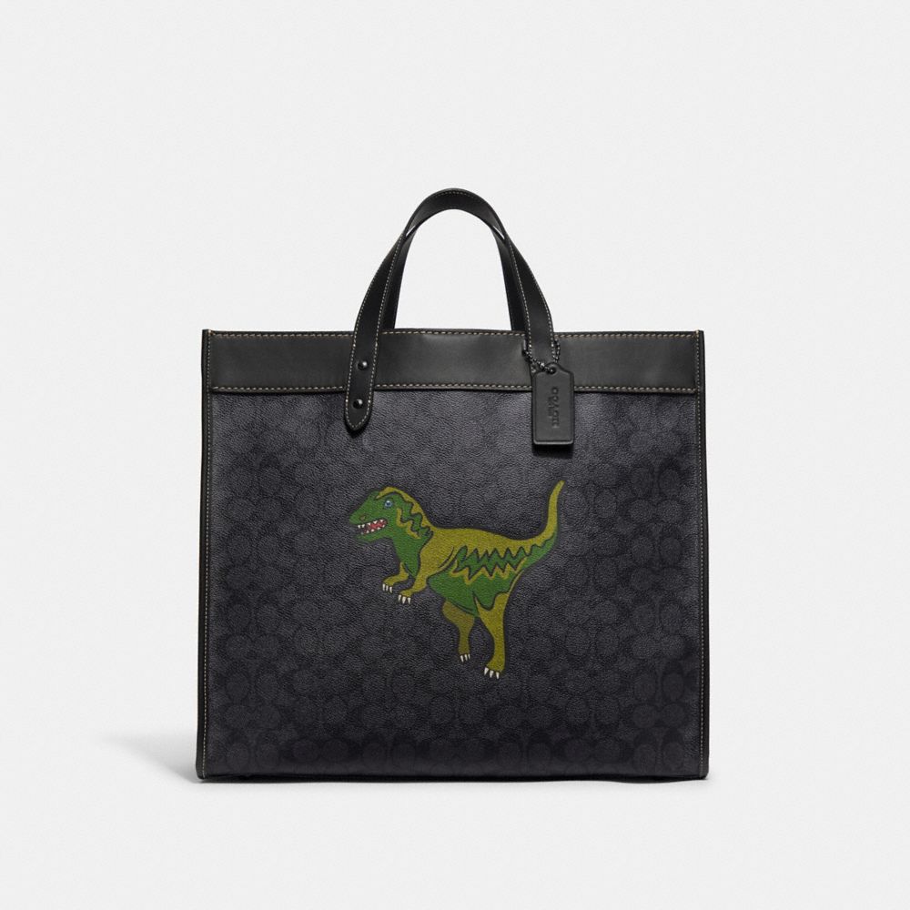 COACH FACTORY OUTLET PRICE CHART - CF077 - FIELD TOTE 40 IN SIGNATURE CANVAS WITH REXY - CHARCOAL
