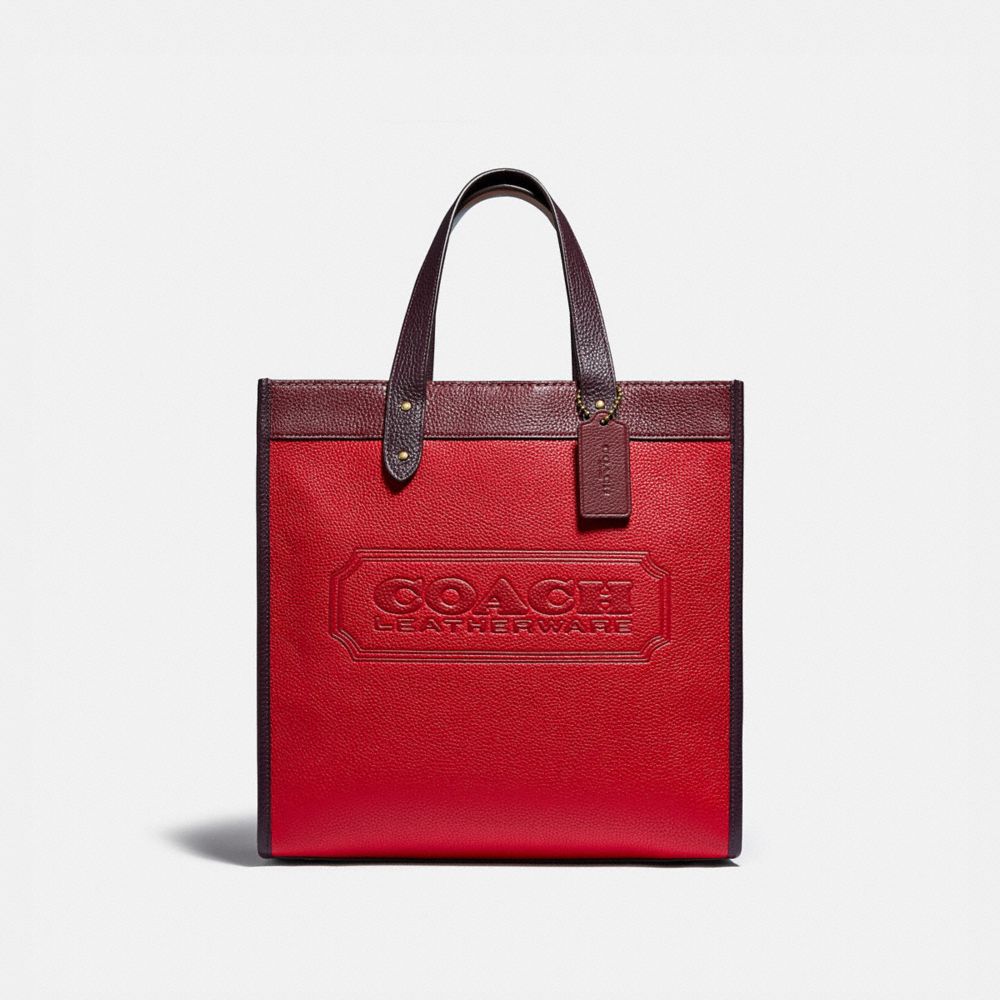 COACH FACTORY OUTLET PRICE CHART - C0775 - FIELD TOTE IN COLORBLOCK WITH COACH BADGE - BRASS/ELECTRIC RED MULTI